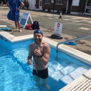 On Saturday 25th June seventeen Brockwell Swimmers took to the waters of the Lido to swim a combined 18 miles to accompany the club’s relay team swimming the same distance, at the same time, from Jersey to France. Both were raising money for the local charity Wheels for Wellbeing and at the time of writing the Brockwell team had raised an impressive £764. If you wish to boost that ammount you can do so by donating at our GoFund page https://gofund.me/1806794f.