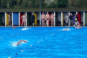 The South London Swimming Club kicked off this year’s season of local races with their annual Heron Cup at Tooting Bec Lido. The water was cold and the weather was wet, but not enough to dampen the spirits of the participating clubs which included Out to Swim, Serpentine, Clapham Chasers, South London Swimming Club and the Brockwell Swimmers.