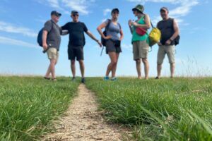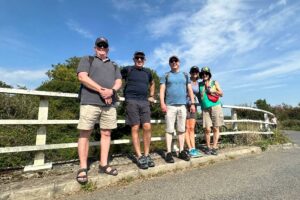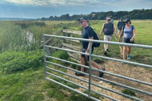 We could not have picked a hotter day for our Summer Walk Swim this year on Sunday 10th September, following the Rye circular via Winchelsea Beach. Dutifully warned by the weather men, we made sure we carried plenty of water and sunscreen. The party of seven (David, Derek, Lisa, Mary, Mike, Nick and Time) met at St Pancras to catch the 9:37am to Rye, also packed with other sun seekers heading for the beaches. Luckily we scuttled onto the train quick enough to all get seats.
