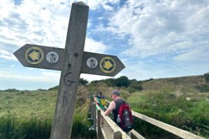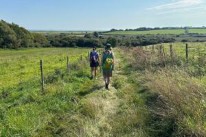 Arriving at Rye Station there was a short discussion on which was the clockwise, or anti-clockwise, direction before successfully choosing the latter. It was just a short walk along the B2089 before plunging down a path and into the glorious countryside of East Sussex laden with sweet juicey blackberries, which did seem to slow David’s pace a bit.